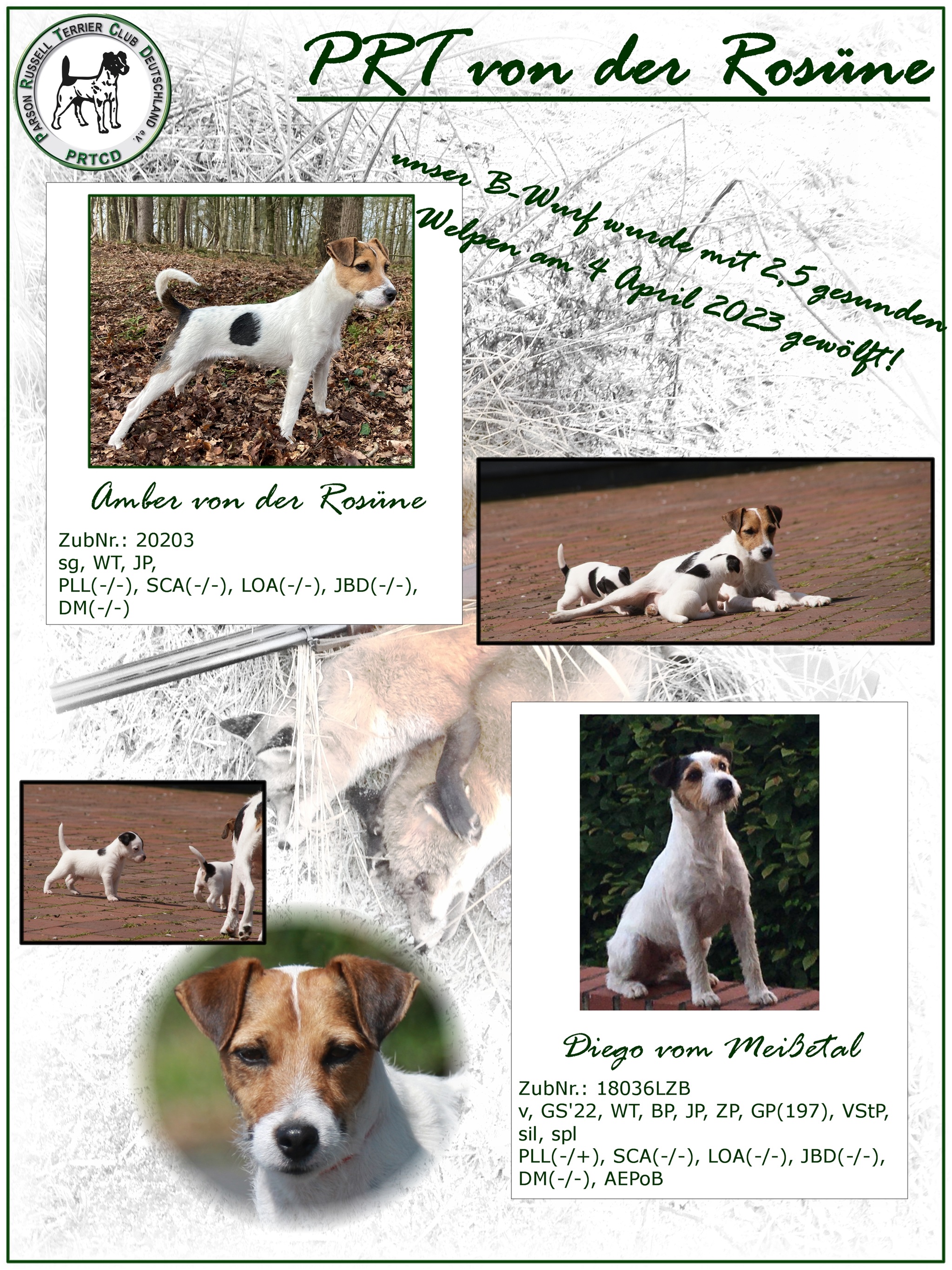 Wir stellen ihnen hier unseren aktuellen PRT Wurf vor. Wir haben ihn nach dem Standard des Parson Russel Terrier Club Deutschland gezogen. Hier sind wir seit 2020 offizielle Züchter.
